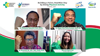 “Dalam upaya meningkatkan aktivitas fisik masyarakat di masa pandemi , Direktorat Kesehatan Kerja dan Olahraga Kementerian Kesehatan RI telah meluncurkan aplikasi SIPGAR untuk melakukan pengukuran kebugaran jasmani mandiri, program penurunan obesitas melalui Weight Loss Challenge (WLC) serta beberapa upaya edukasi kelompok olahraga dan masyarakat umum terkait peningkatan aktivitas fisik melalui webinar, pelatihan bagi tenaga kesehatan secara daring, sejumlah kompetisi olahraga virtual,senam virtual, dan beberapa rangkaian acara dalam rangka Hari Aktivitas Fisik Sedunia,” tutup dr. Riskiyana.