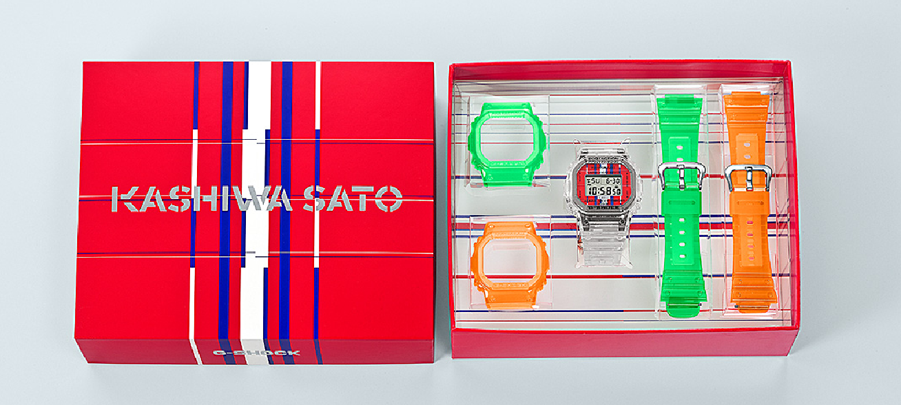 Strap transparan/putih bening maupun yang semi-transparan dengan warna oranye dan hijau bersama dengan tiga bezel berbeda disertakan dalam setiap kemasan. Dengan keunikan ini, setiap pemiliknya dapat berkreasi secara bebas untuk membuat 27 variasi jam tangan yang berbeda.  Dengan ini, pemilik DWE-5600KS seakan bisa bermain dan berkreasi bersama G-SHOCK dan Kashiwa Sato.