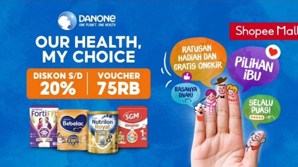 - Hadiah Menarik Setiap Pembelian: Konsumen dapat memilih berbagai hadiah menarik untuk melengkapi pengalaman berbelanja produk Danone di Shopee, diskon hingga 20% dan voucher belanja hingga Rp.75.000