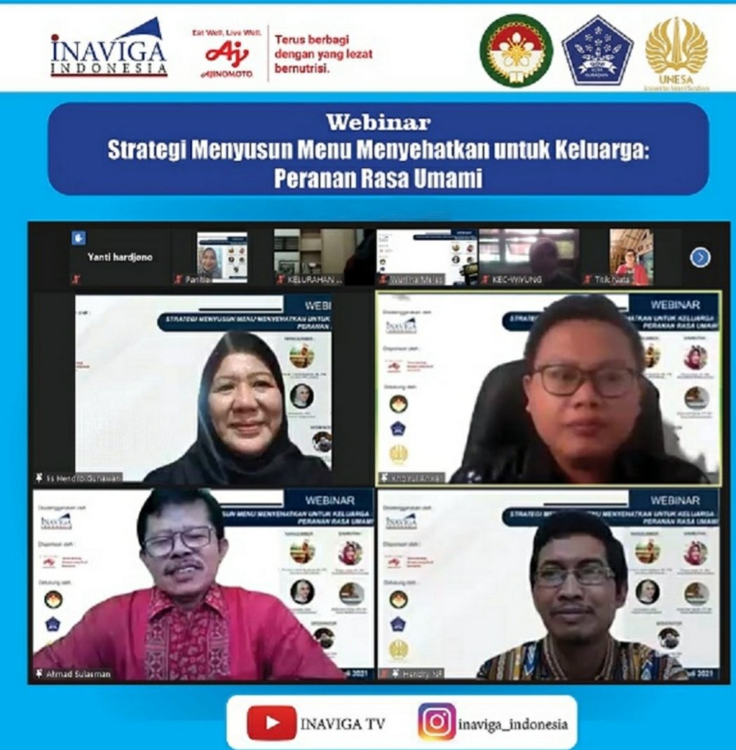 GANLOP.COM – PT AJINOMOTO INDONESIA bekerjasama dengan INAVIGA INDONESIA mengadakan Webinar Event: “Peran Bumbu Umami Sebagai Strategi Menyusun Menu Sehat untuk Keluarga”, sebagai upaya mendukung masyarakat Indonesia untuk tetap sehat dengan menyebarluaskan fakta-fakta informatif tentang bumbu umami di tengah masa PPKM pandemi COVID-19.