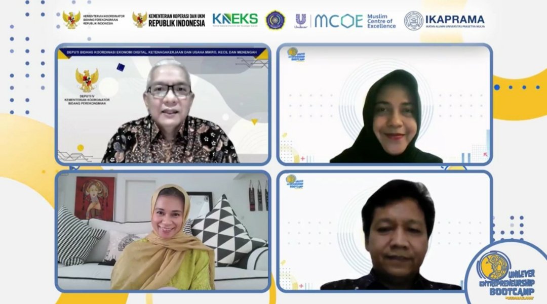 GANLOP.COM – PT Unilever Indonesia, Tbk. melalui Unilever Muslim Centre of Excellence (Unilever MCOE) memberikan penghargaan kepada 3 (tiga) peserta terbaik yang telah mengikuti rangkaian program Unilever Entrepreneurship Bootcamp #MudaMaslahat (Makmur, Sejahtera, Adil, dan Sehat) yang digelar selama Juni–Agustus 2021. Program kerja sama antara Unilever MCOE dengan Asosiasi Fakultas Ekonomi dan Bisnis Perguruan Tinggi Muhammadiyah dan ‘Aisyiyah, Komite Nasional Ekonomi dan Keuangan Syariah RI, serta Kementerian Koperasi dan UKM RI ini telah diikuti oleh 60 wirausaha muda atau youngpreneurs dari sejumlah perguruan tinggi Muhammadiyah di berbagai wilayah Indonesia.