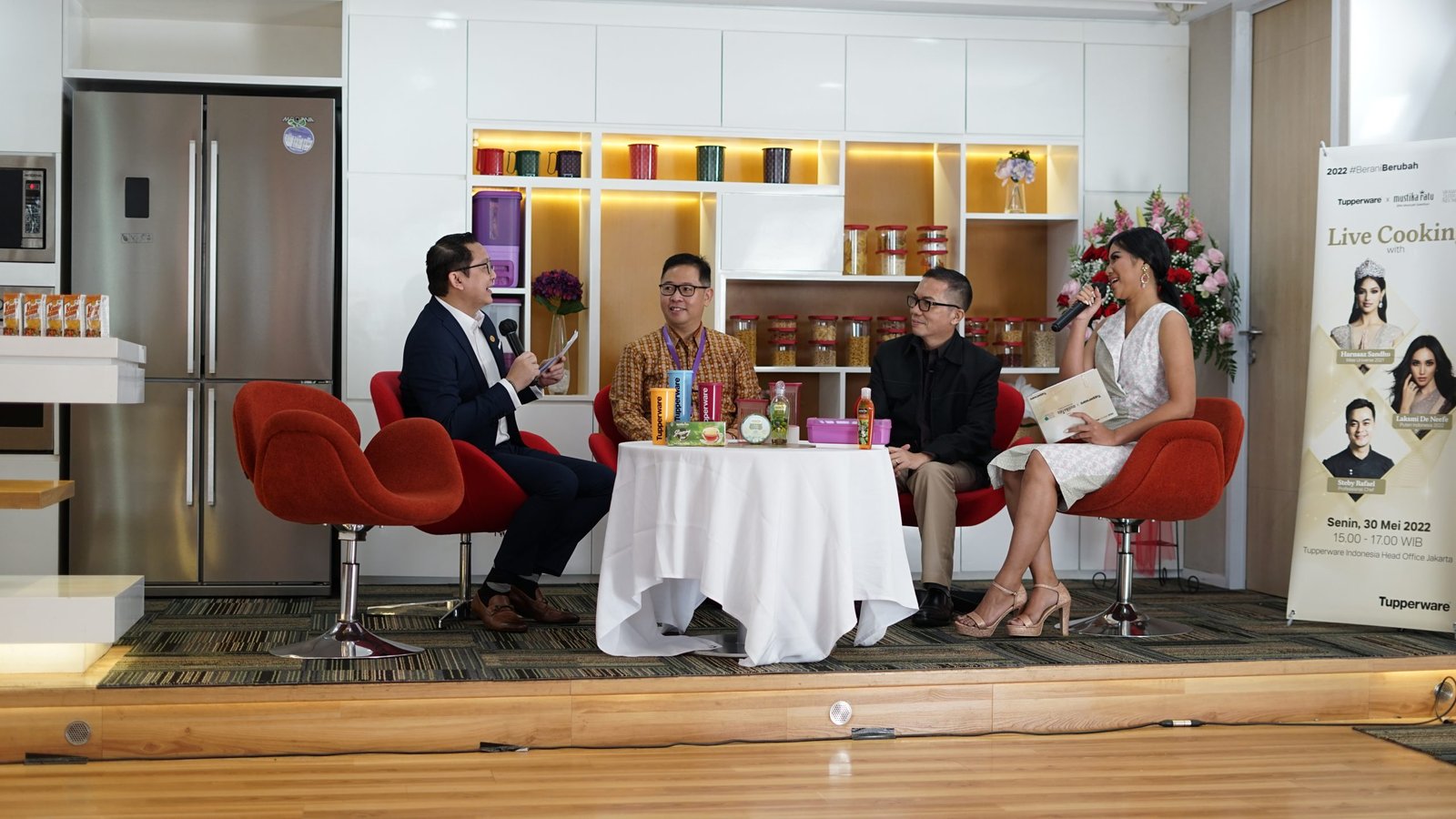 Melalui acara Live Cooking yang dipandu oleh Chef Steby Rafael bersama Miss Universe 2021 dan Puteri Indonesia 2022, Tupperware dan Mustika Ratu membagikan inspirasi resep Salmon Rujak Mangga Kiwi dan Spicy Lime Kunir Asam Mocktail yang terbuat dari jamu siap minum P.T Mustika Ratu, Varian Kunir Asam, Varian Gula Asam, Varian Beras Kencur yang memiliki manfaat yang berbeda. Dalam demo ini, semua Proses olahan makanan dan minuman dibuat menggunakan produk cookware dan preparation dari Tupperware, diantaranya Black Series Fry Pan, Super Sonic Chopper serta Asian Pro Knife.