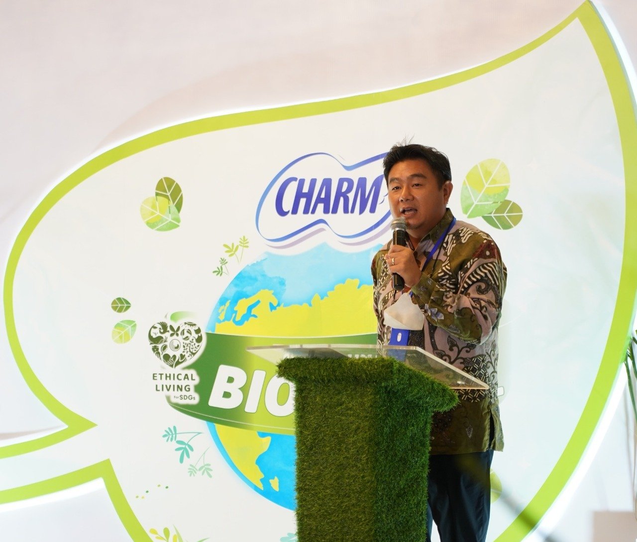 Presiden Direktur Yuji Ishii menjelaskan, “Untuk meluncurkan pembalut menggunakan Bio Material, departemen R&D kami melakukan riset selama kurang lebih 4 tahun, dan bekerjasama dengan badan riset dalam dan luar negeri untuk melakukan trial and error berulang kali. Hasilnya, kami berhasil meluncurkan Charm Herbal Ansept+ Bio yang top sheet, yaitu bagian yang bersentuhan langsung dengan kulitnya menggunakan Bio Material yang dibuat dari saringan serat tebu, dalam edisi terbatas.