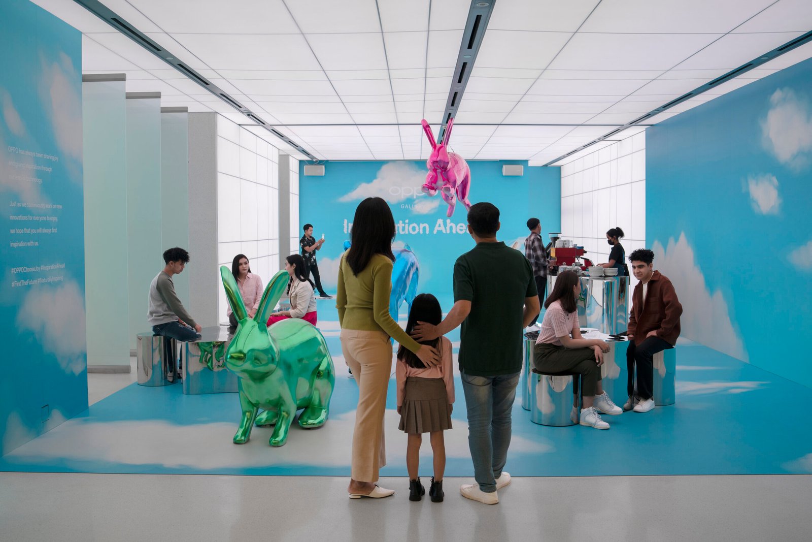 Sementara itu, di OPPO Gallery Gandaria City para pengunjung bisa berfoto di instalasi kelinci yang menggemaskan serta dapat berkumpul bersama dengan keluarga atau kerabat di OPPO Gallery yang berkonsep communal space.