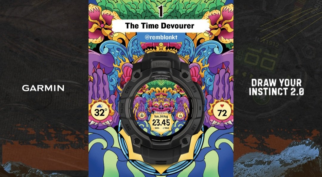 Terinspirasi dari sosok mitologi Jawa-Bali, Batara Kala, karya ini menggambarkan perjalanan penuh tantangan dalam mengejar passion. Dengan warna kontras dan karakter raksasa yang menyeramkan, desain ini menjadi simbol keberanian melawan rasa takut, konsistensi berkarya, dan semangat mengalahkan waktu. Baidowih menegaskan, watch face ini bukan sekadar tampilan jam, tetapi pesan optimisme bagi siapa pun yang sedang mengejar mimpinya: KITA BERTAHAN, KITA MELAHAP WAKTU.